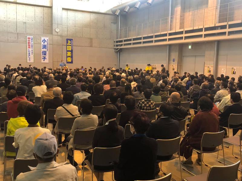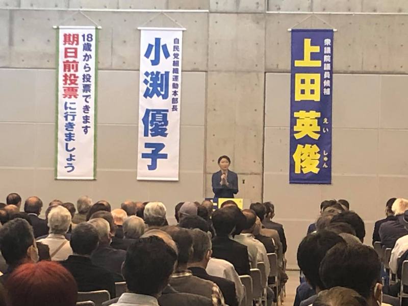 上田英俊新川地域決起大会が始まりました。 小渕優子自民党組織対策本部長から応援を頂いています。 早稲田雄弁会OB小渕恵三元代議士の後輩というご縁もあり、秘書時代からのお付き合いとのとです。 力強い激励を頂きました。