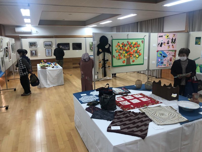 地元公民館祭り 明日の投票会場と重なり規模縮小。 皆さんの作品が出展されています。