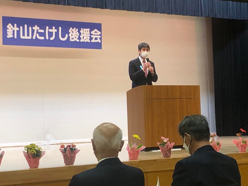 針山たけし後援会に参加しています。同期の令和会一員として、日頃から頼りにしている針ちゃんへの感謝の思いを抱きながら、喜んで馳せ参じました。 伏木地区をはじめとした高岡市内から多くの後援会員の方々がされています。 国会議員、同僚県議の挨拶に続いて、一言ご挨拶させて頂きました、