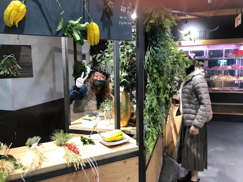 昼休み、総曲輪BACEで発見!黒部からの出店の花職人さんです。