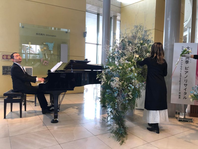 コンサートnow フラワーアレンジメントとのコラボレーション企画です。 ピアニストの大森さんは地元のお寺の副住職さんてす。 素敵な演奏に、心地よいひとときを頂くことができました。