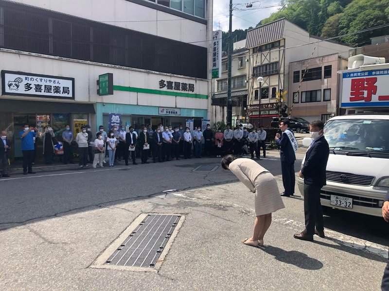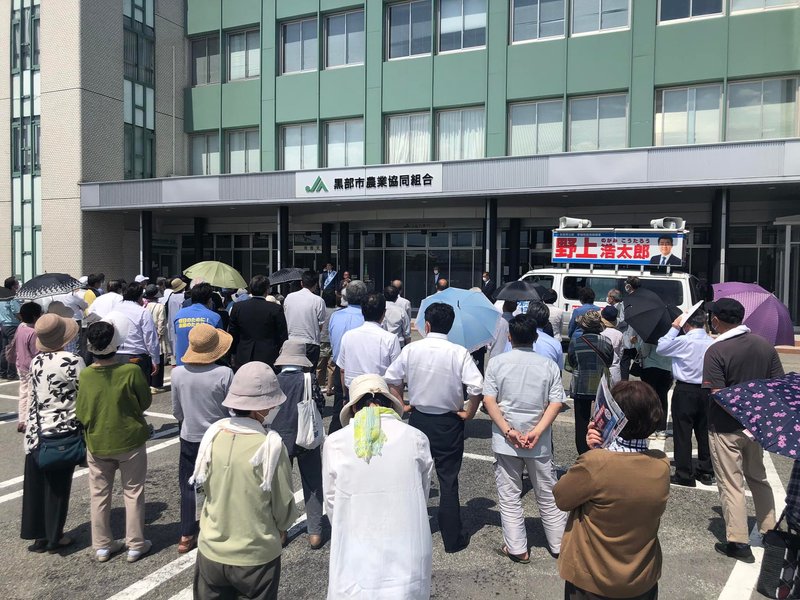 野上浩太郎候補の宇奈月、黒部出陣式。暑い中でしたが多くの方にご参集いただきありがとうございました。
