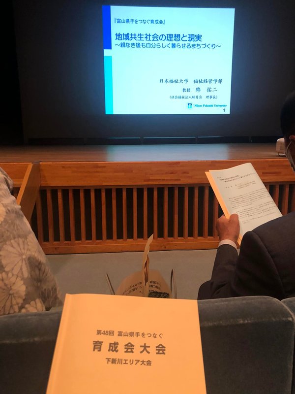 全体研修会では、日本福祉大学の綿教授から自らの体験を通しながら「地域共生社会の理想と現実~親なき後も自分らしく暮らせるまちづくり~」と題してご講演いただきました。