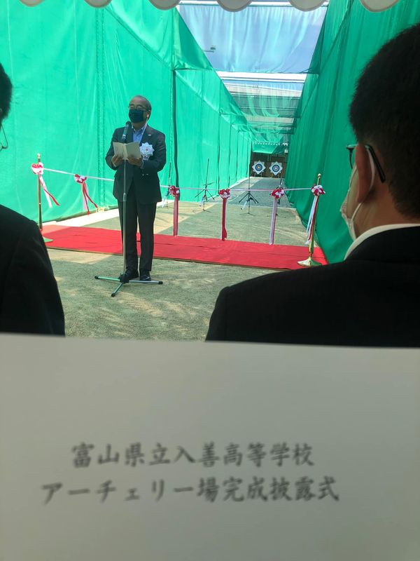 入善高校にアーチェリー練習場完成。本日お披露目会がありました。 富山県アーチェリー協会長としてお招きいただきました。 1994富山インターハイ、2000富山国体が宇奈月町(現在の黒部市)で開催されて以来、アーチェリー選手育成に今年3月閉校となった泊高校が大きな役割を果たしました。 統合した入善高校では、伝統を引き継ぎ、選手育成に期待したいと思います。