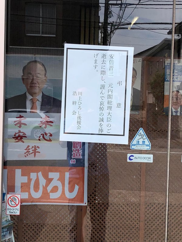 ホーム>政党・政治家>川上 ひろし (カワカミ ヒロシ)>安倍晋三元内閣総理大臣のご逝去に際し、哀悼の誠を捧げます。