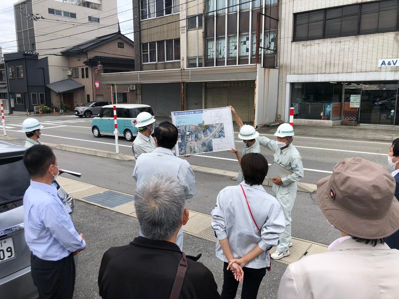 自民党政調会の要望箇所現地周りが行われました。 黒部市は、三日市の県道カーブの危険箇所改良を確認してもらいました。