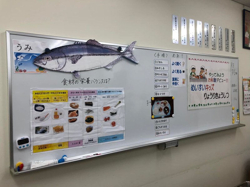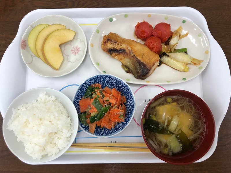 食育への地域の取組 若栗地区のボランティアの方々が、小学生に地域の食材を使って調理実習。 ご相伴に預かりました。 食材のそのものの味が活かされ、メインのブリの照り焼きも、タレとのバランスも良く美味しくいただきました。
