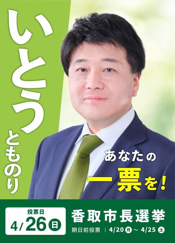 ホーム>政党・政治家>伊藤 友則 (イトウ トモノリ)>【香取市長選挙本日から期日前投票も始まりました❗️】【期日前投票所と投票時間】香取市役所 8:...
