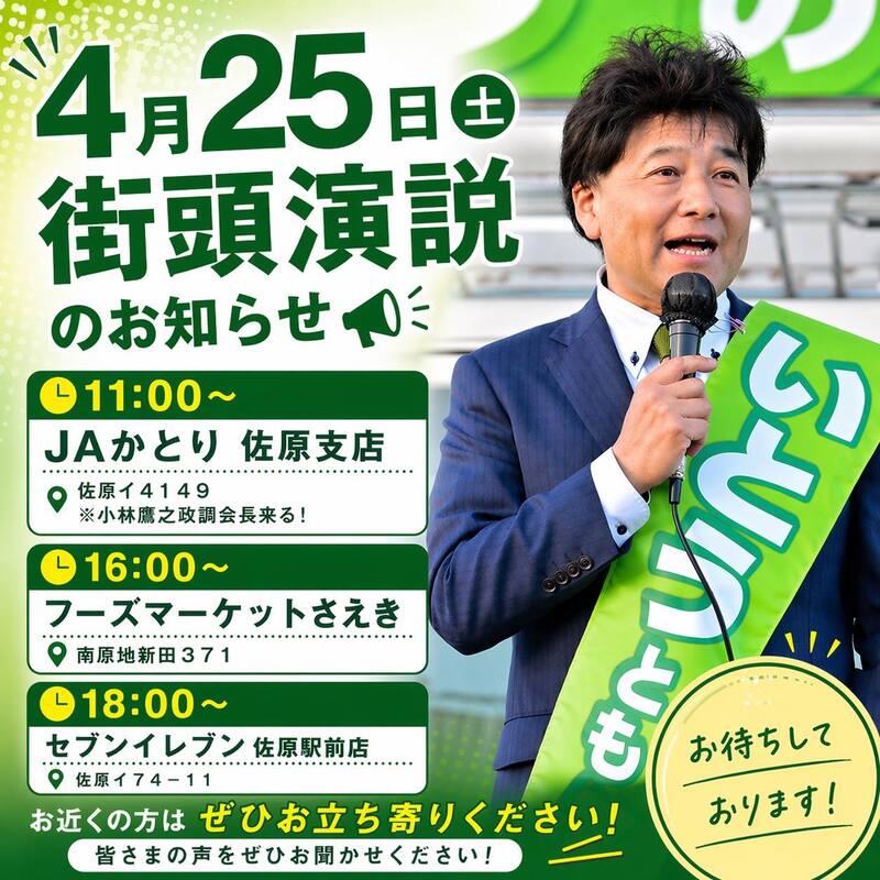 【自民党政調会長小林鷹之衆議院議員】最終日4/25午前11時の街頭演説にお越しいただきましたm...