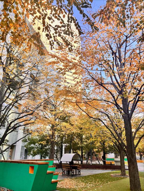 緑と机、ほんの少しの工夫で、人が集い、くつろぐ空間が生まれていました。