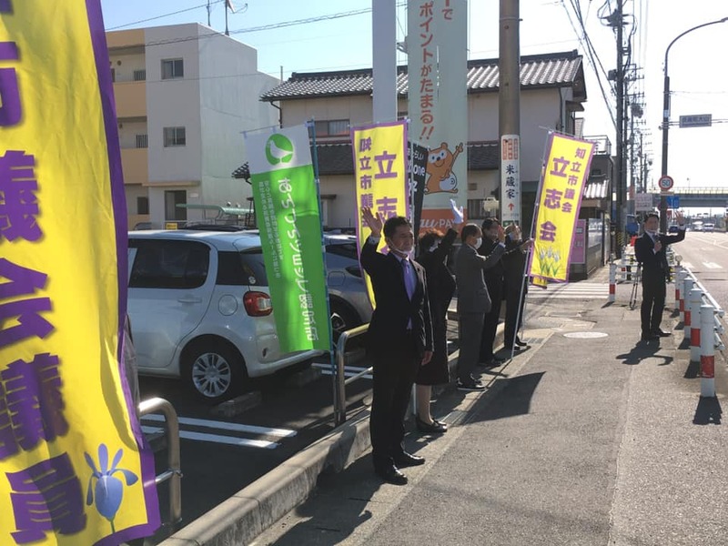 🎃ハロウィンの日の午前中は、会派の街宣活動を、市内の大型商業施設の前の県道交差点で実施しました。