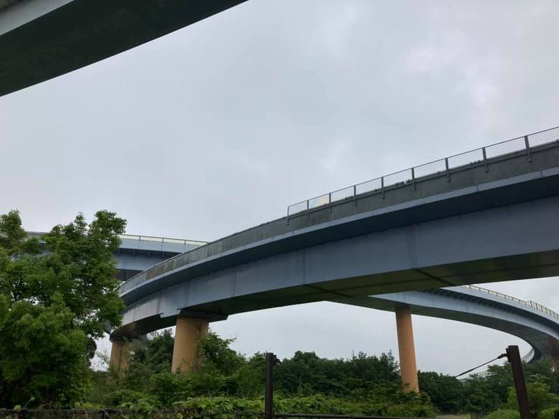 いつも何気に上を通る高速のジャンクションは、下から見ると複雑に入り組んでいますね…。