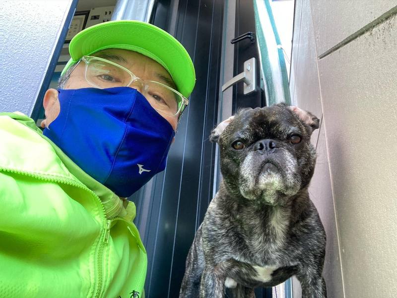 相棒🐶のお出迎えは最近はテッパンのスタイル…。