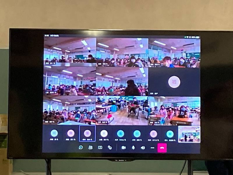 GIGAスクール構想の功績で、この会議室での模様は、タブレット端末で撮影され、各教室にライブ配信されました…📺。こちらのモニターにも各教室の模様が伝わってきました。