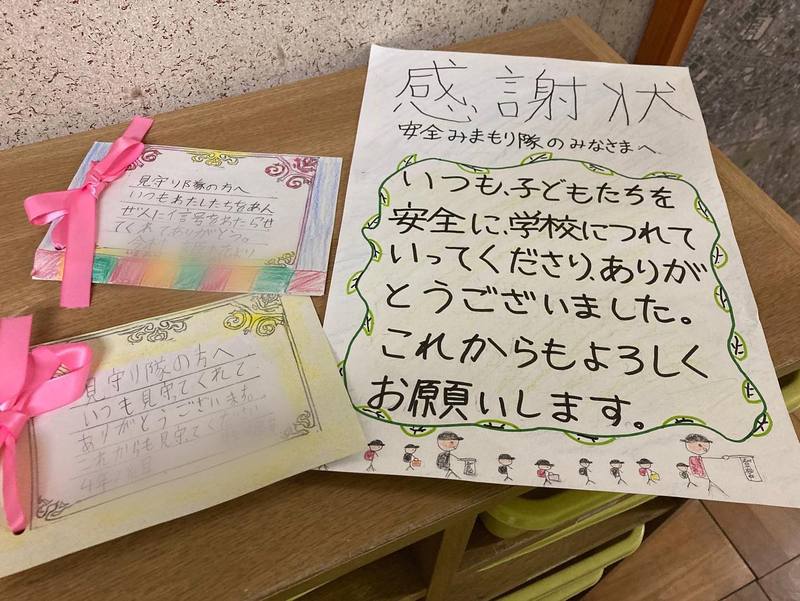 私もみまもり隊の代表としてお招きいただき、感謝状、お礼のメッセージカード、メダル🏅をいただきました。この他にも、交通指導員さん、体験農園のお世話をしてくれる農家の方々などが参加していました。