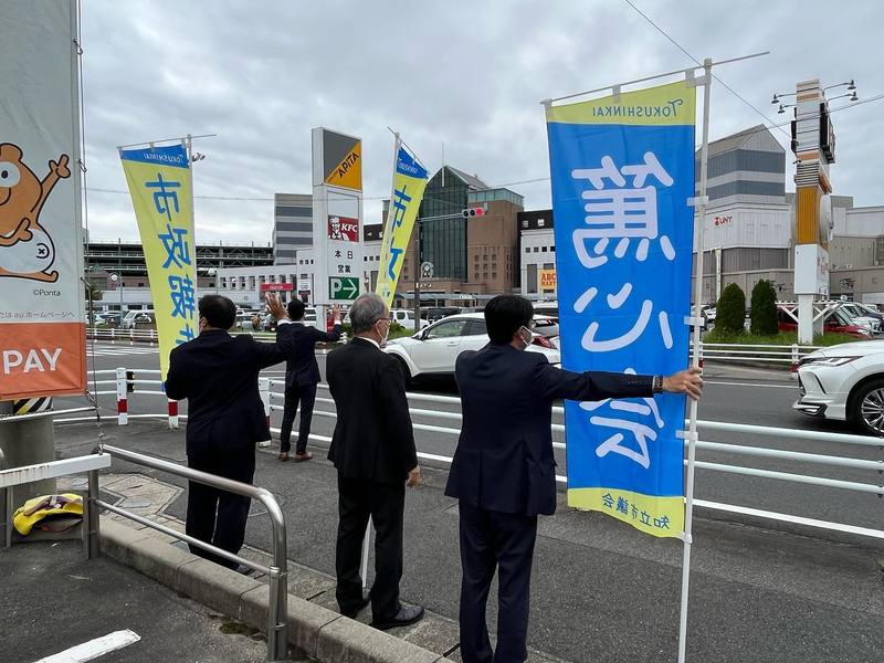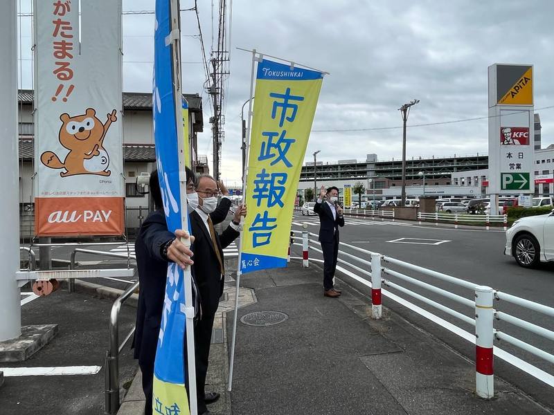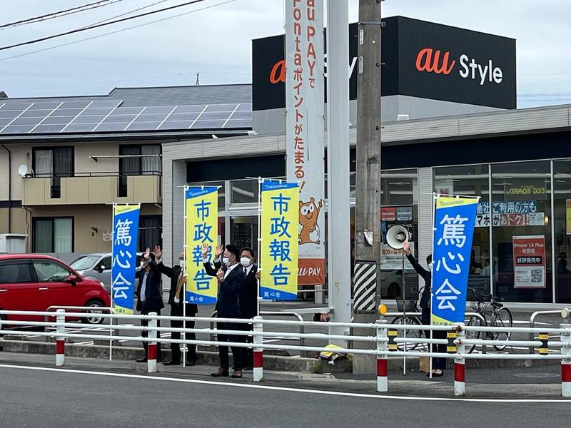 ホーム>政党・政治家>田中 健 (タナカ タケシ)>【📣篤心会・定例街宣活動🎤】本日は市内の大型商業施設前の交差点で、会派の街宣活動を行いました。