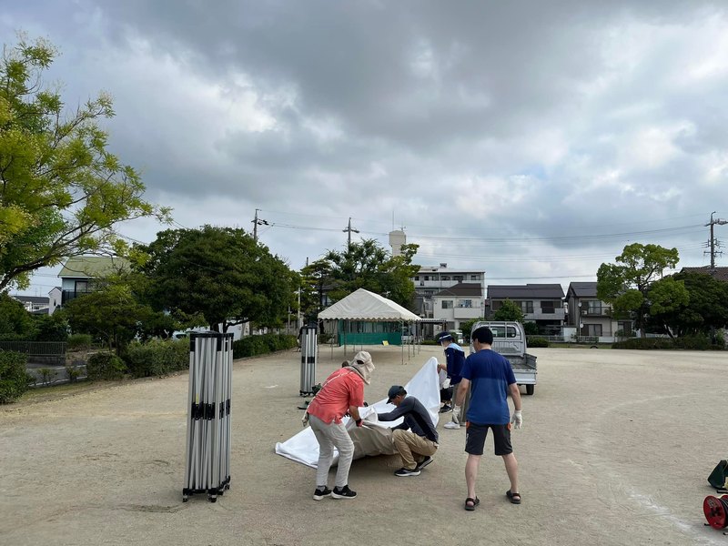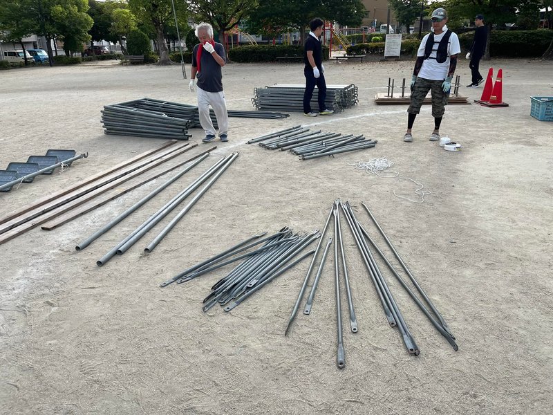 そしてそのまま、盆踊りの後片付け…🧤。櫓やテントの撤去は、組立の半分の時間で終わりました…。