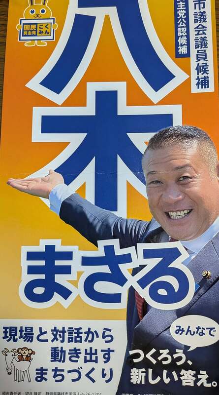 藤枝市議会議員選挙八木まさる候補、3081票で2位当選させていただきました。