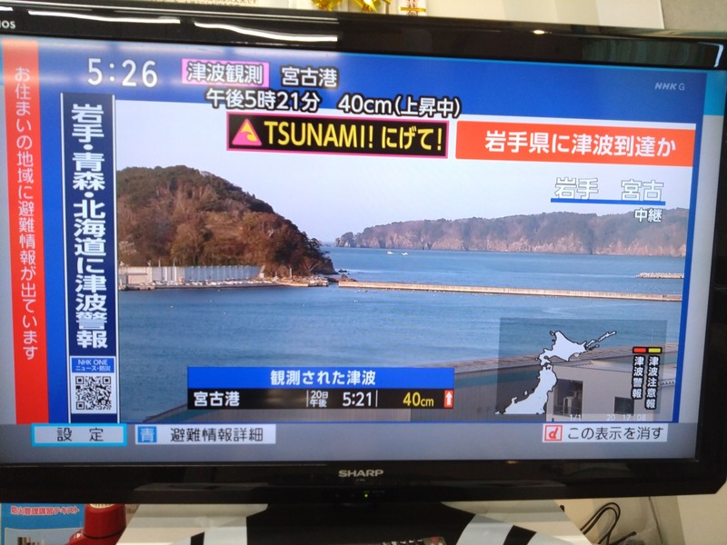 津波注意報が出ています。