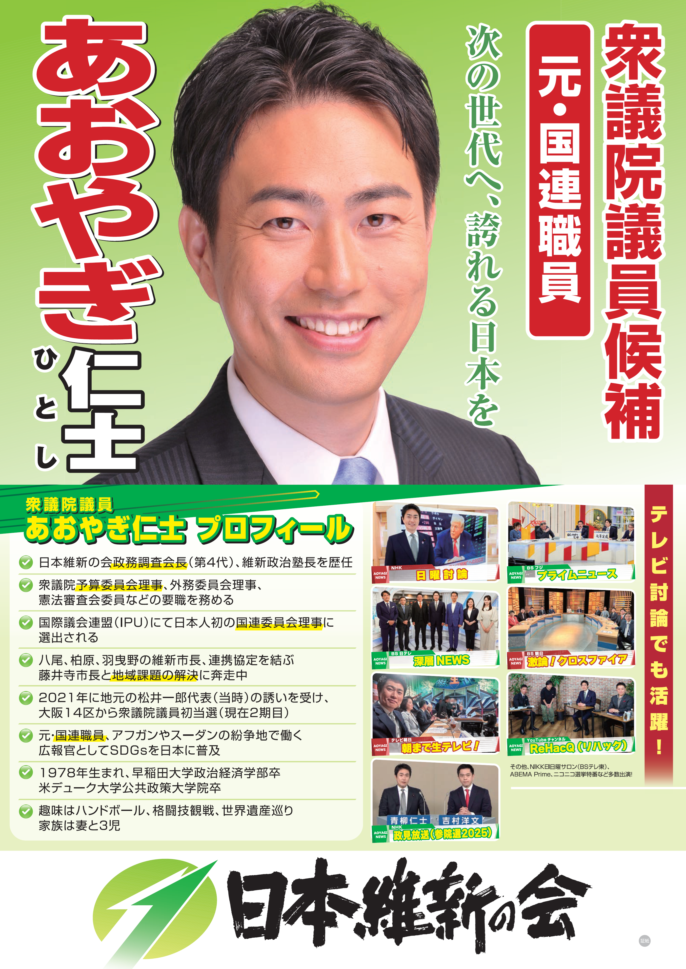 #あおやぎ仁士 #大阪14区 <日本維新の会 公認>