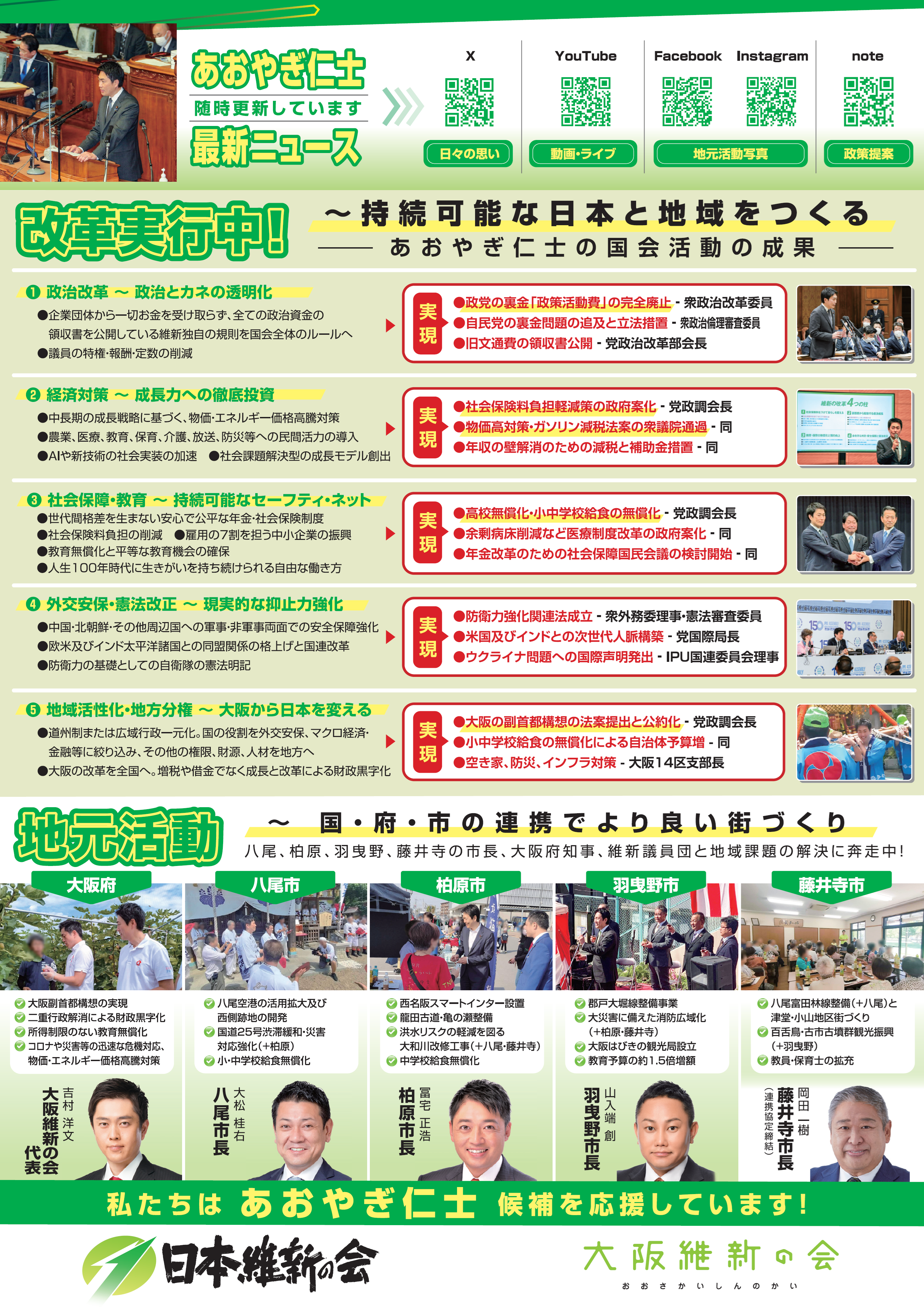 ホーム>政党・政治家>青柳 仁士 (アオヤギ ヒトシ)>あおやぎ仁士 大阪14区 日本維新の会~選挙ビラ
