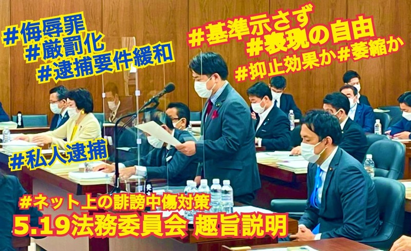 #刑法 #民法 #侮辱罪 #名誉毀損 #犯罪 #表現の自由 #言論 #インターネット #SNS #誹謗 #中傷 #教唆犯 #幇助犯 #私人逮捕 #プロバイダ #匿名 #損害賠償 #厳罰化 #立憲 #伊藤俊輔 #伊藤しゅんすけ