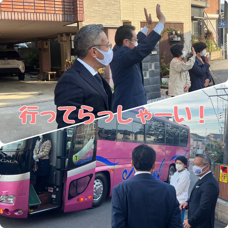 ホーム>政党・政治家>あおやま 周平 (アオヤマ シュウヘイ)>バス旅行のお見送り。