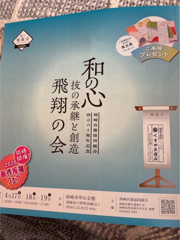 岡崎呉服組合、創立60周年記念「飛翔の会」に伺わせて頂きました。