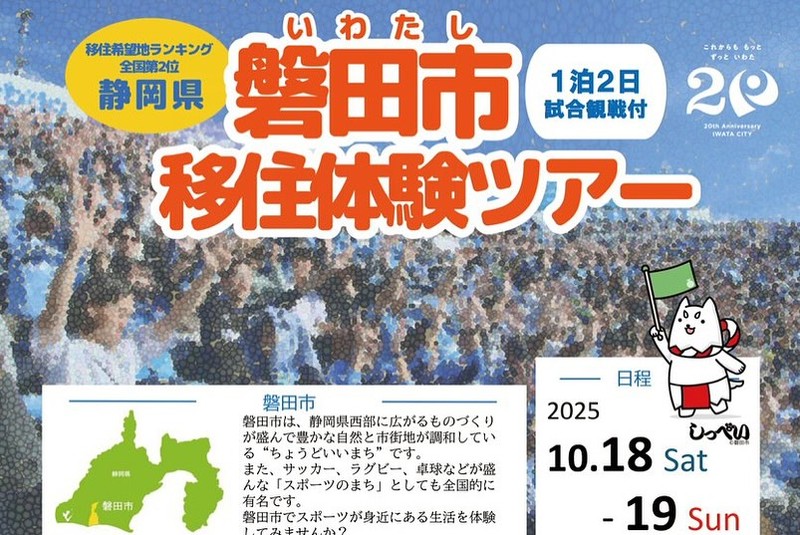 それからもうひとつは、関東在住ジュビロのサポーターへ、磐田市への移住に興味がある方の移住体験ツアーのご案内です!