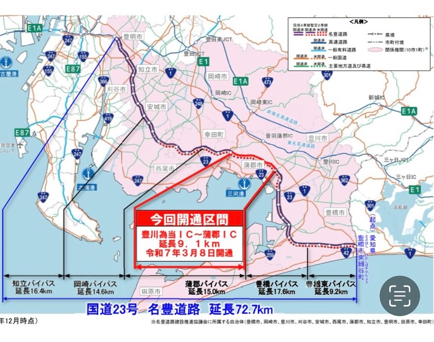 非常に嬉しいニュースである一方、西尾東IC以東は暫定2車線であり、今後さらに交通量が増加することが見込まれる中、一刻も早い4車線化が望まれます。