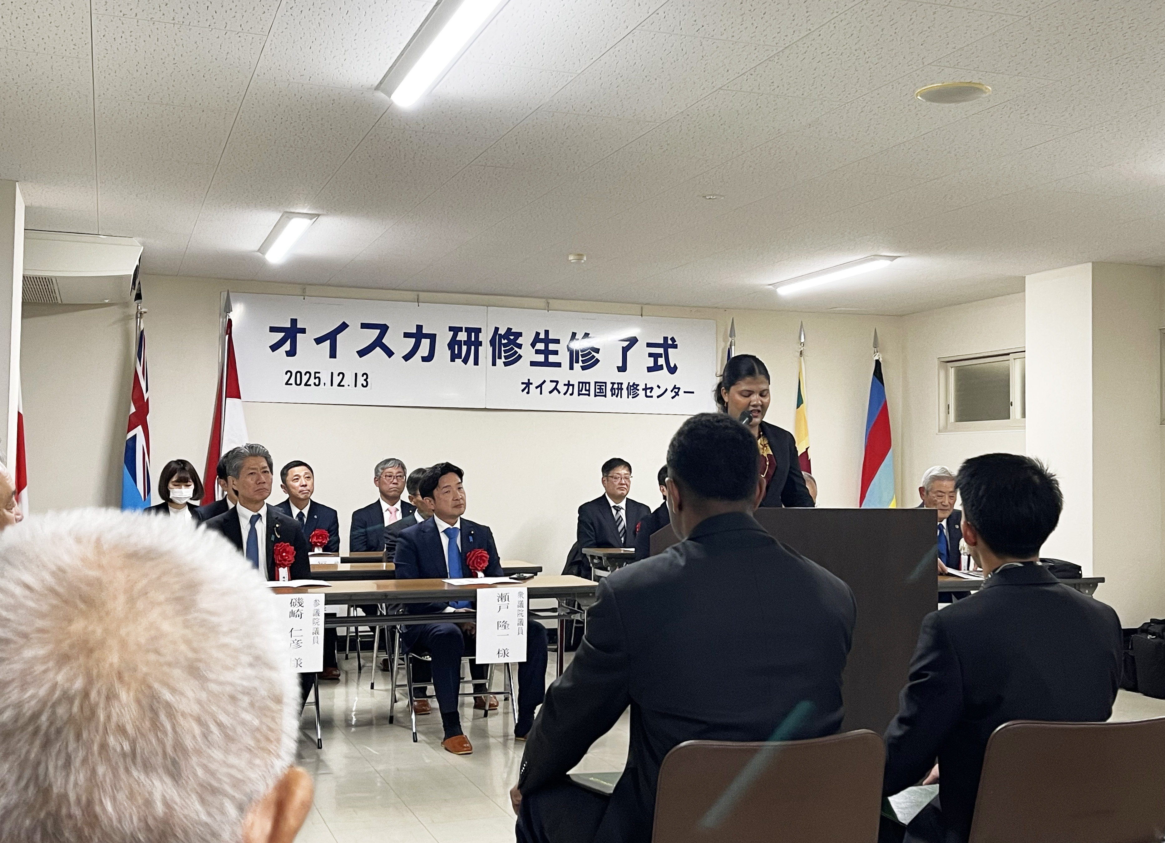 12月14日、綾川町にありますオイスカ四国研修センターにて、令和7年度研修生の修了式が執り行われました。