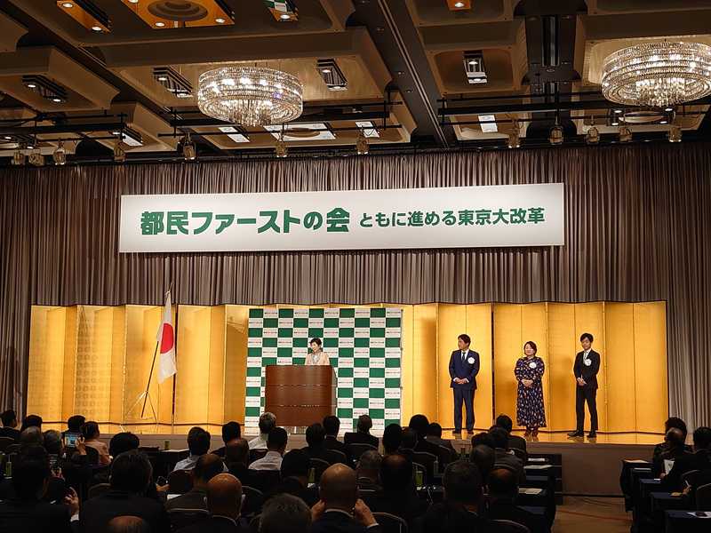 小池百合子都知事(特別顧問)、森村たかゆき代表などから都民ファーストの会の成果や政策のお話し。