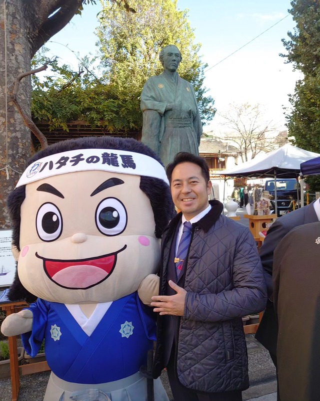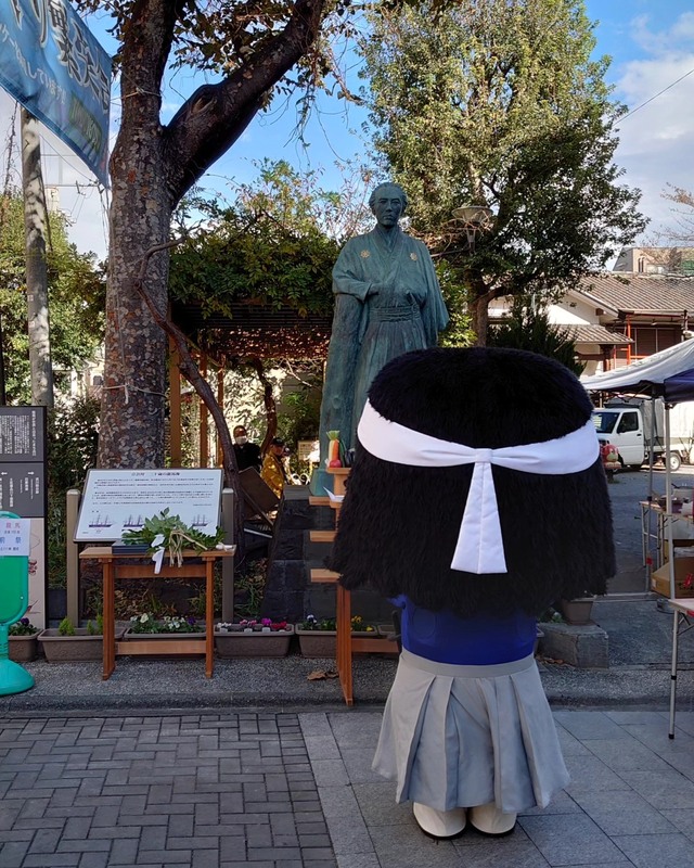 しながわ観光大使見習いの「ハタチの龍馬」くんと龍馬像前でツーショット❗