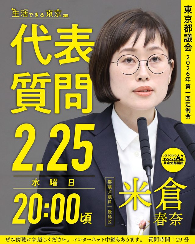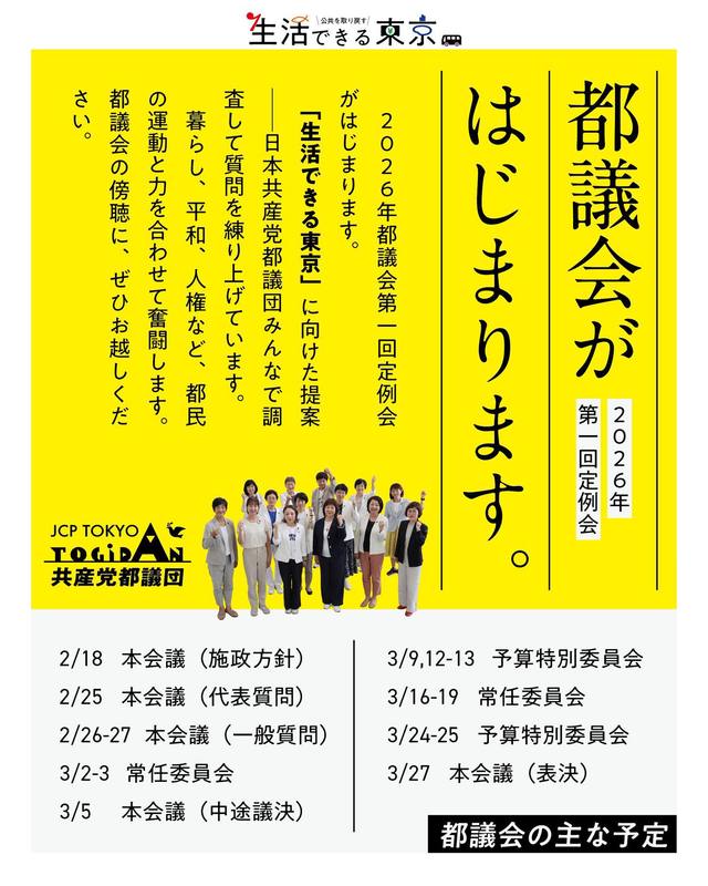 都議会が始まりました。今週の代表質問、日本共産党からは私が質問します🙋♀️
