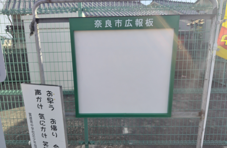 学園大和町の奈良市広報板が壊れていた事と、