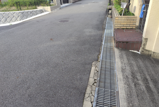 市民の方から、雨天時に道路側溝から水が溢れて、駐車場が水で浸かる。