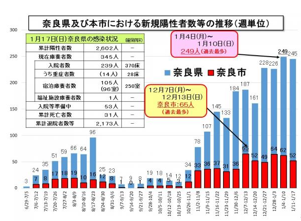 奈良市は、1週間単位で新型コロナウィルスの感染状況を公開しています。