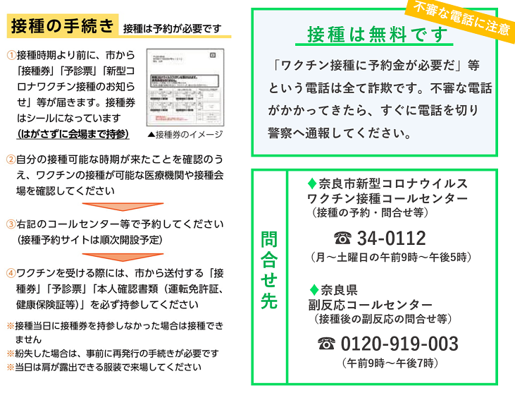 以下は、接種の手続きを奈良市のホームページから抜粋しました。