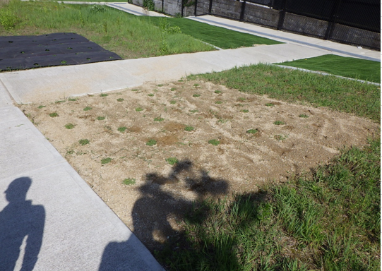 雑草対策の実証実験を求めていましたが、先週、つむぎの小径(奈良学園前・鶴舞)にて