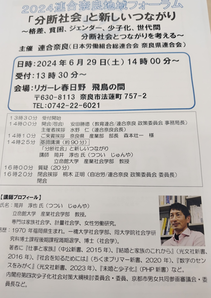 ホーム>政党・政治家>ひぐち 清二郎 (ヒグチ セイジロウ)>連合奈良地域フォーラム「分断社会」と新しいつながり講演会