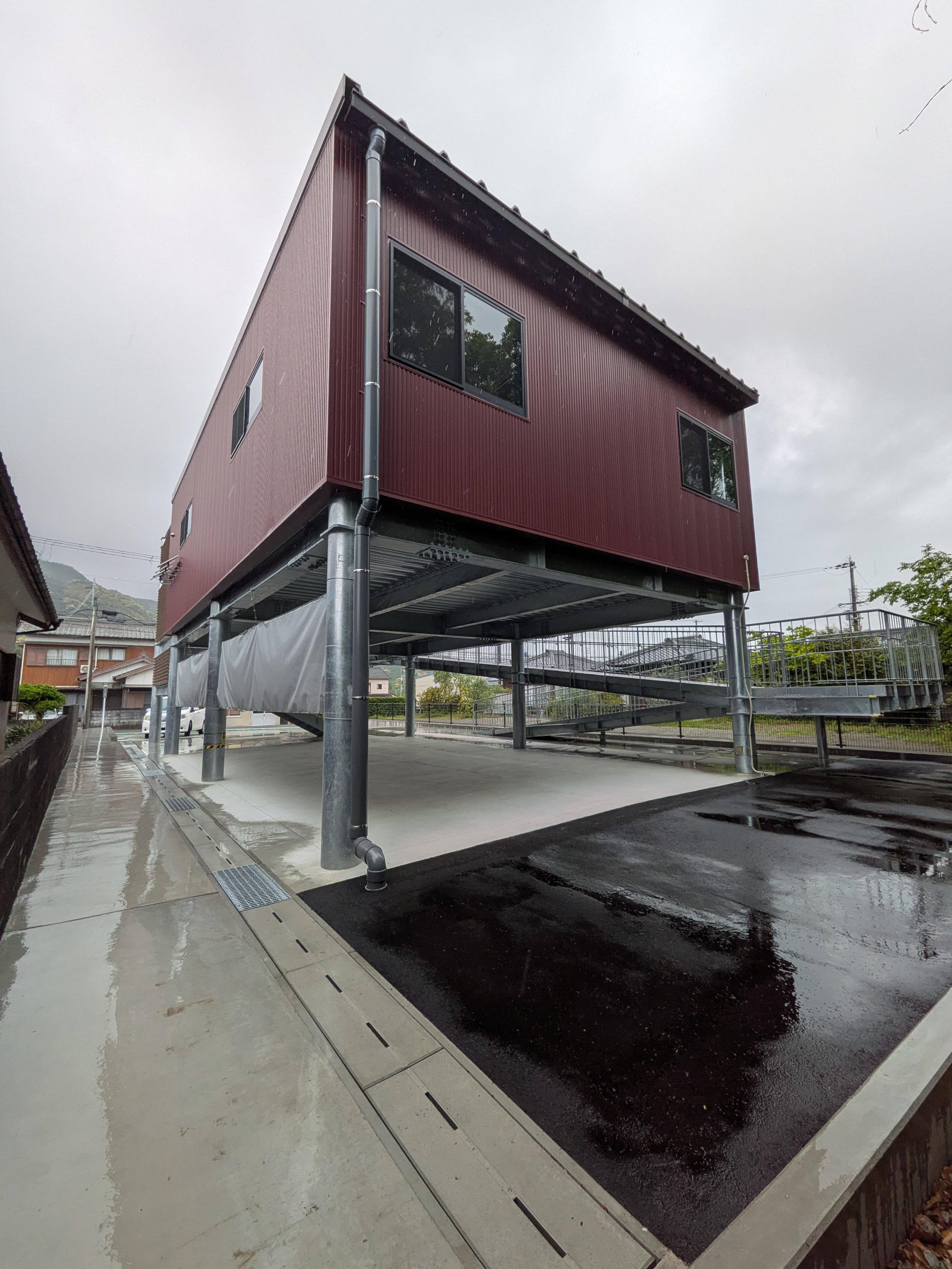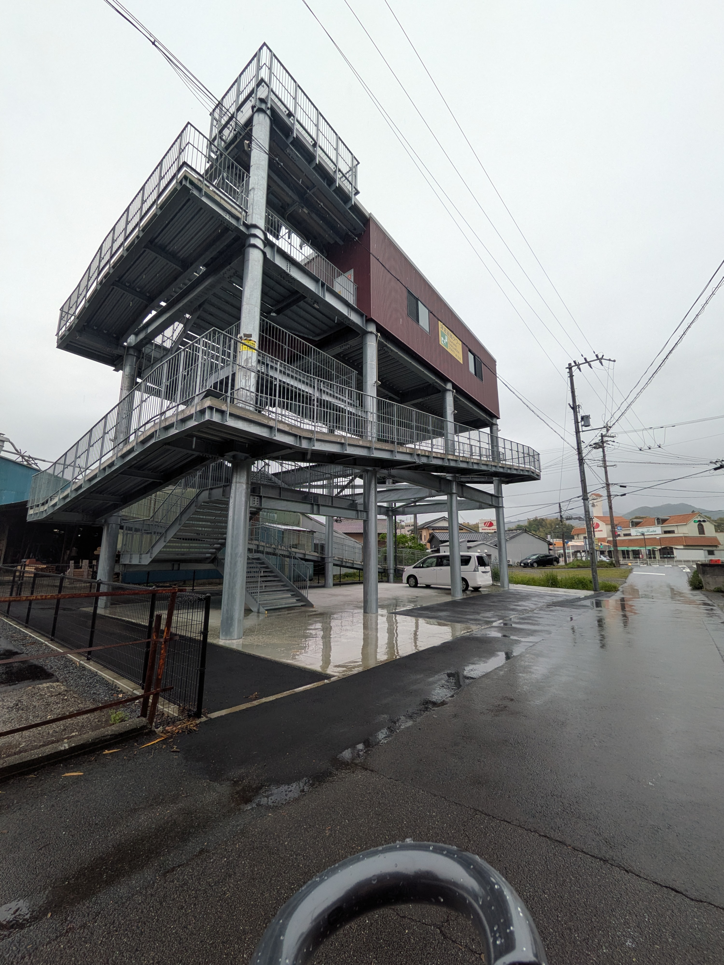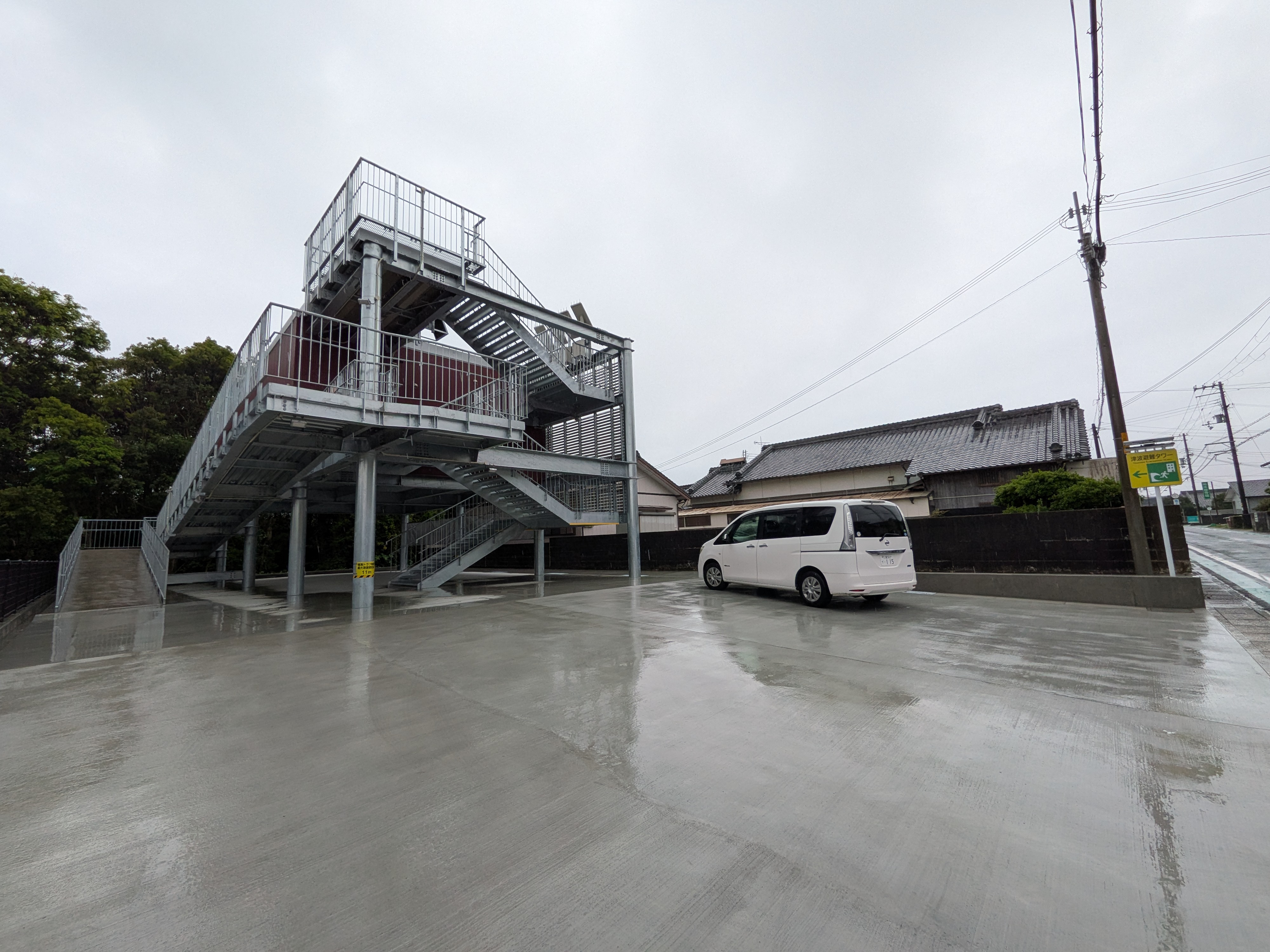 ⬇️紀宝町に新たに建設された3、4基目の鉄骨式津波避難タワー(町長が想定する円筒形よりも敷地面積も狭く、建設費も安く済みます)