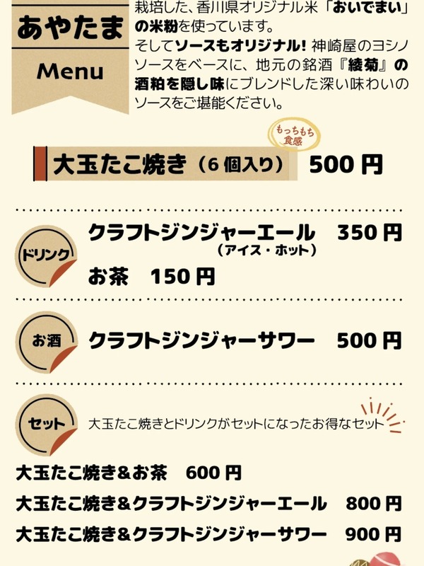あやたまは、たこ焼き、クラフトジンジャー、射的やります。