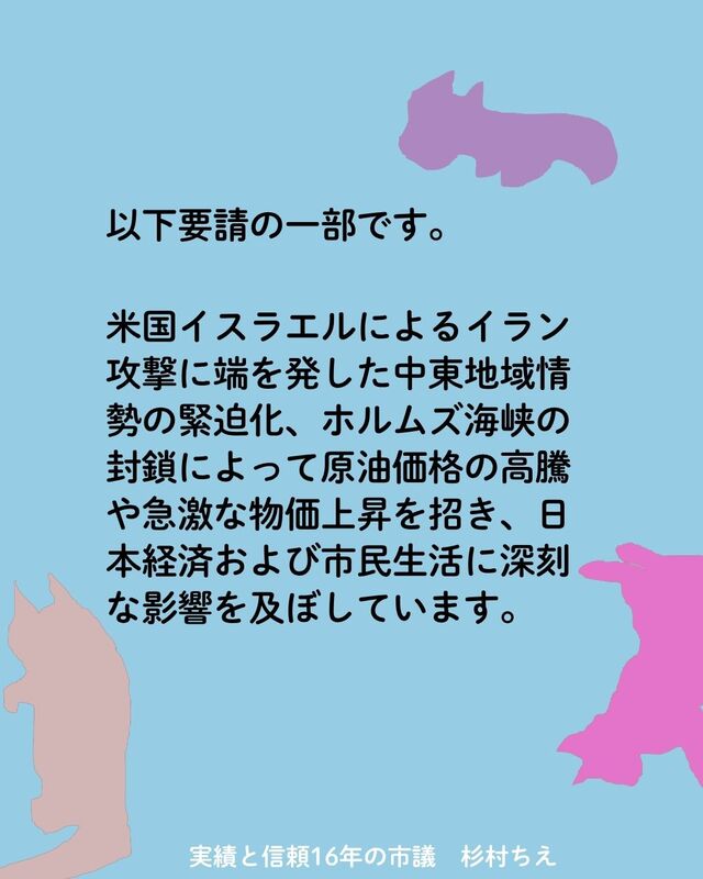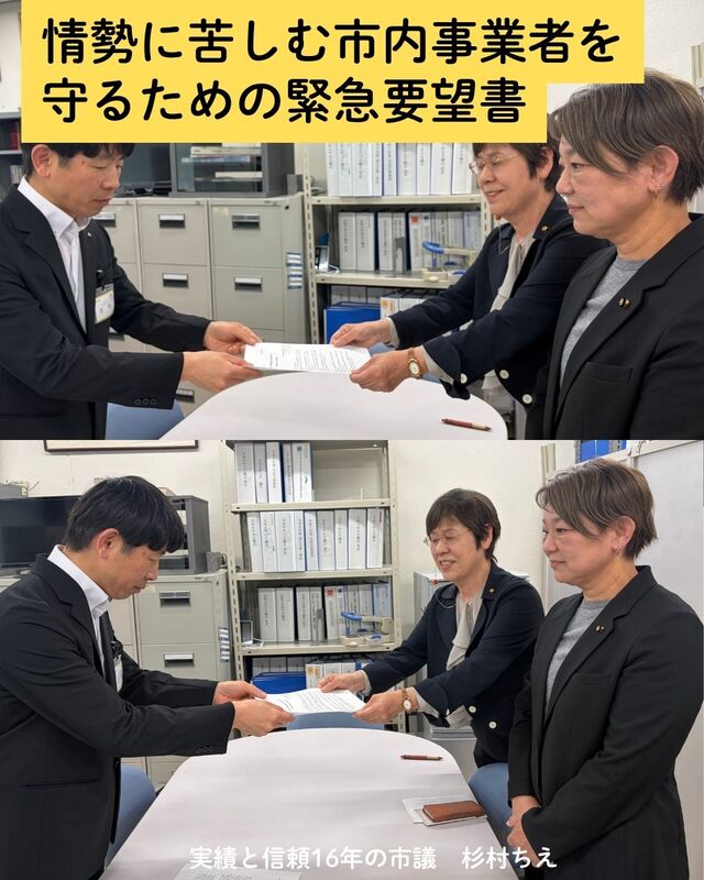 ホーム>政党・政治家>杉村 ちえ (スギムラ チエ)>先日4月13日、松山市に対し、物価高騰と資金繰りに苦しむ市内事業者を守るための「緊急要望書」を...