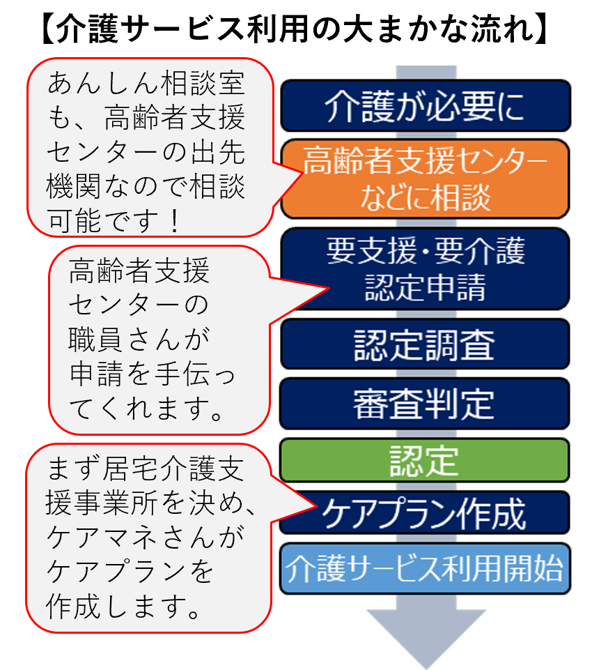 突然、介護が必要になれば、誰でも不安になります。そのような時は、近くの高齢者支援センター(あんしん相談室)が力になってくれます。ぜひ活用していただきたいと思います。