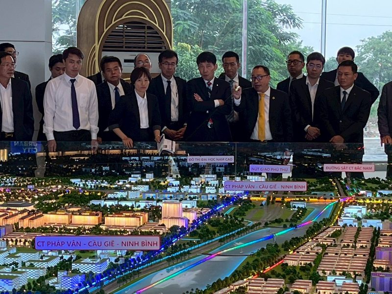午後は、ベトナム有数の企業であるサングループを訪れ、現在建設中である総面積約1600ヘクタールに及ぶ住居・商業・娯楽施設等の大規模複合施設「サンアーバンシティ」の概要を伺うとともに、現地視察も行いました。