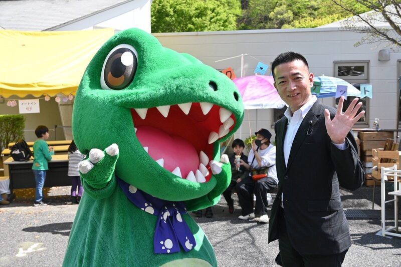 神流町のマスコットキャラクター「サウルスくん」もおもてなしで大活躍です。