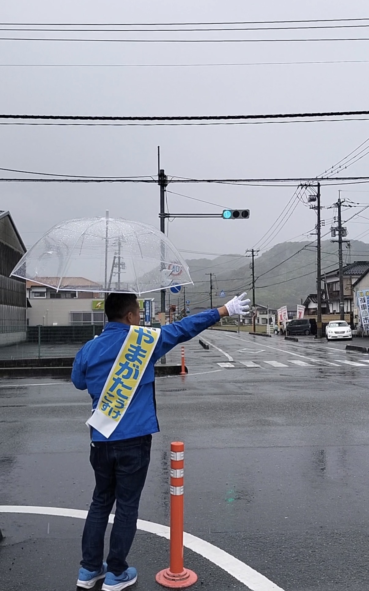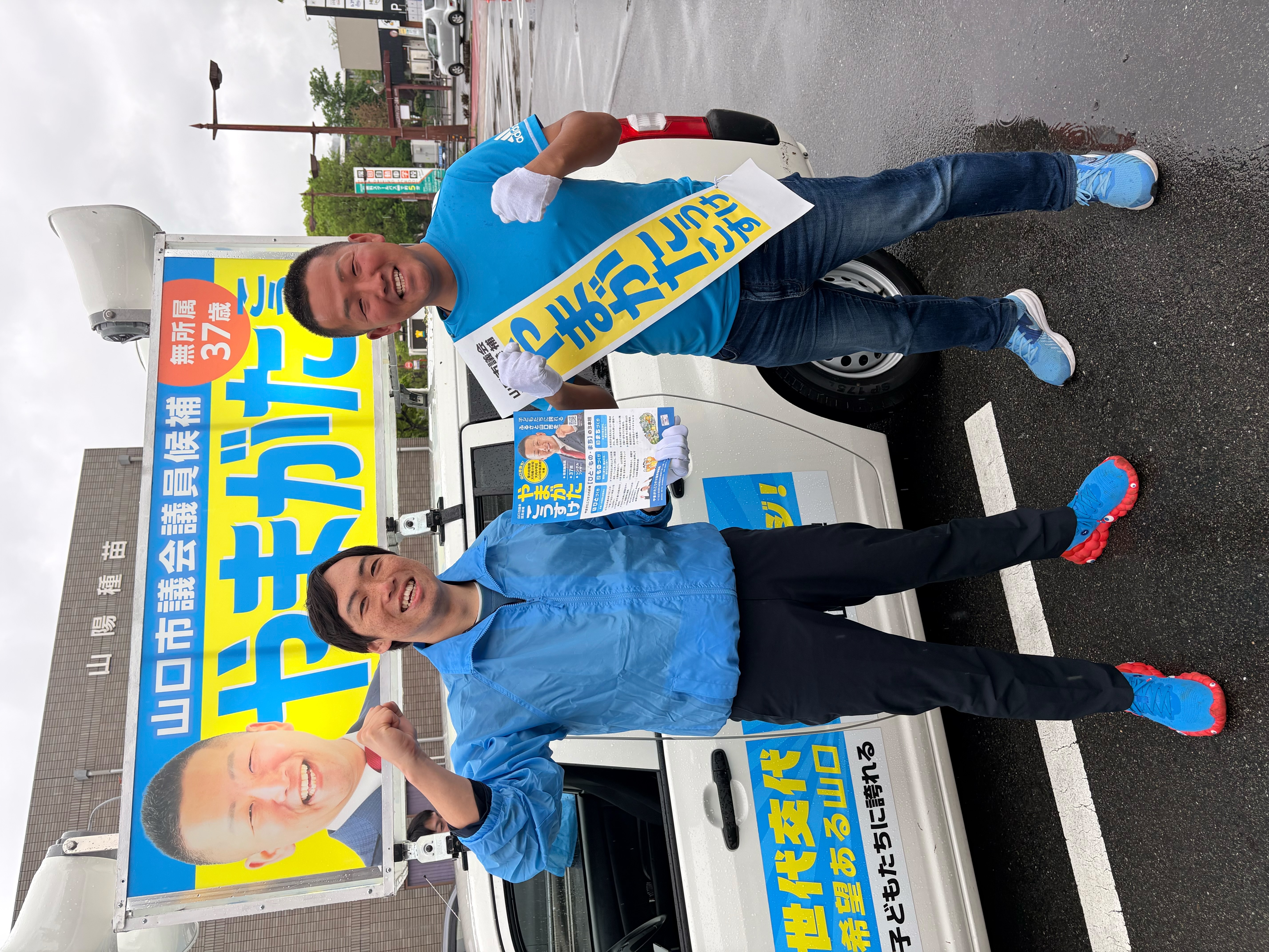ホーム>政党・政治家>やまがた こうすけ (ヤマガタ コウスケ)>【選挙戦5日目】雨の朝もいつもの場所から、秋穂地域へ。大学同期の応援も!