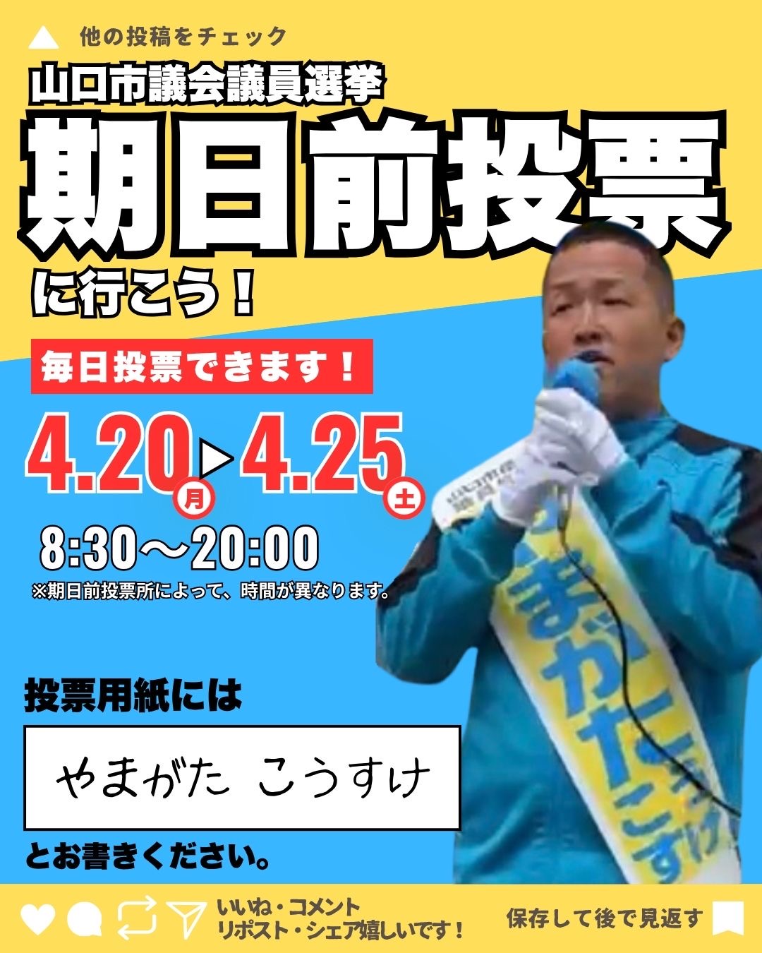 どうかその一票を、「やまがたこうすけ」へ託してください💪🏼✨