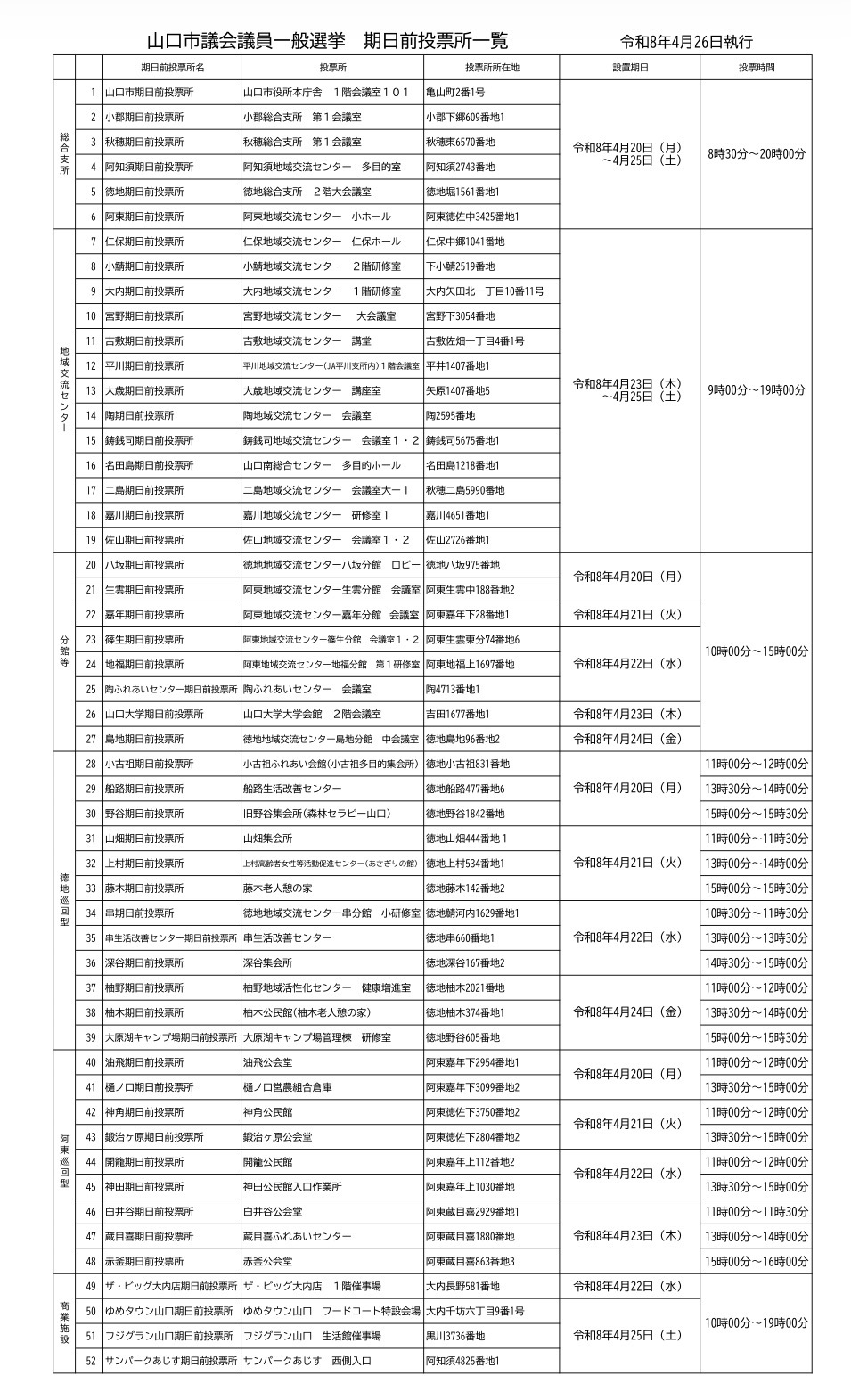 大内のゆめタウン、平川のフジグラン、阿知須のサンパークあじす