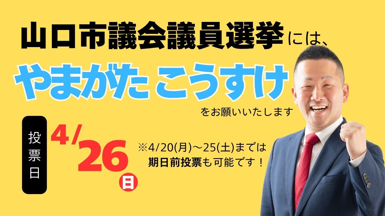 山口市議会議員選挙も、いよいよ最終盤となりました。